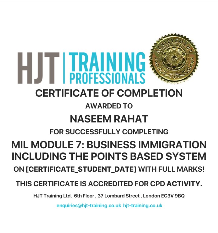 Certificate for User Naseem Rahat
